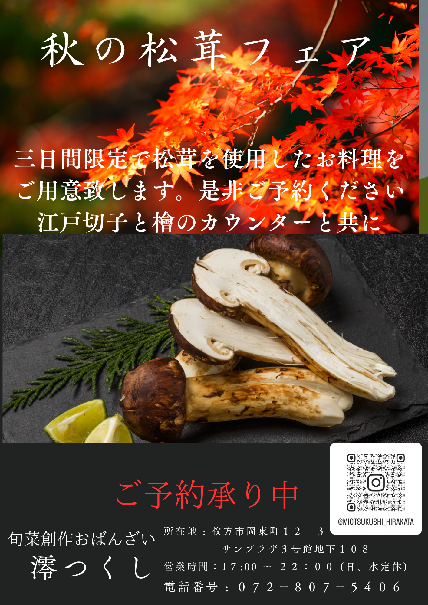 秋の松茸フェア開催致します